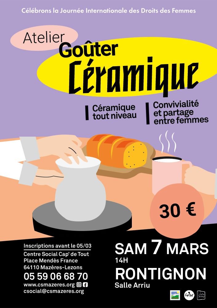 Cap'de Tout vous propose un gouter céramique entre femmes le samedi 7 mars.